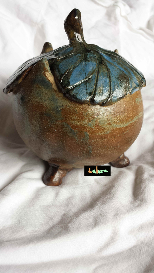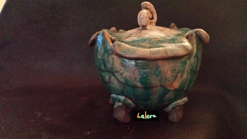 ![]() Tummad lockskål , raku - Pinched lidded bowl, raku. |